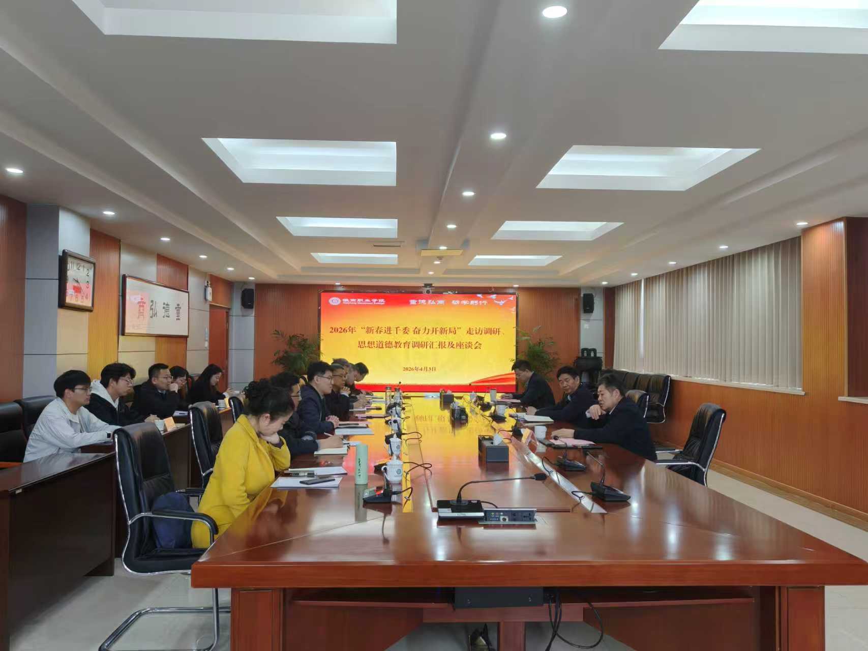 4月3日,省国资系统关工委副主任钱途,省国资系统关工委副主任、秘书长张德保一行来我校开展“新春进千委·奋力开新局”走访调研和思想道德教育调研,学校党委书记、关工委主任陈春来陪同,学校关工委副主任刘安国及学校关工委委员、“五老”代表、青年师生代表等参加调研。